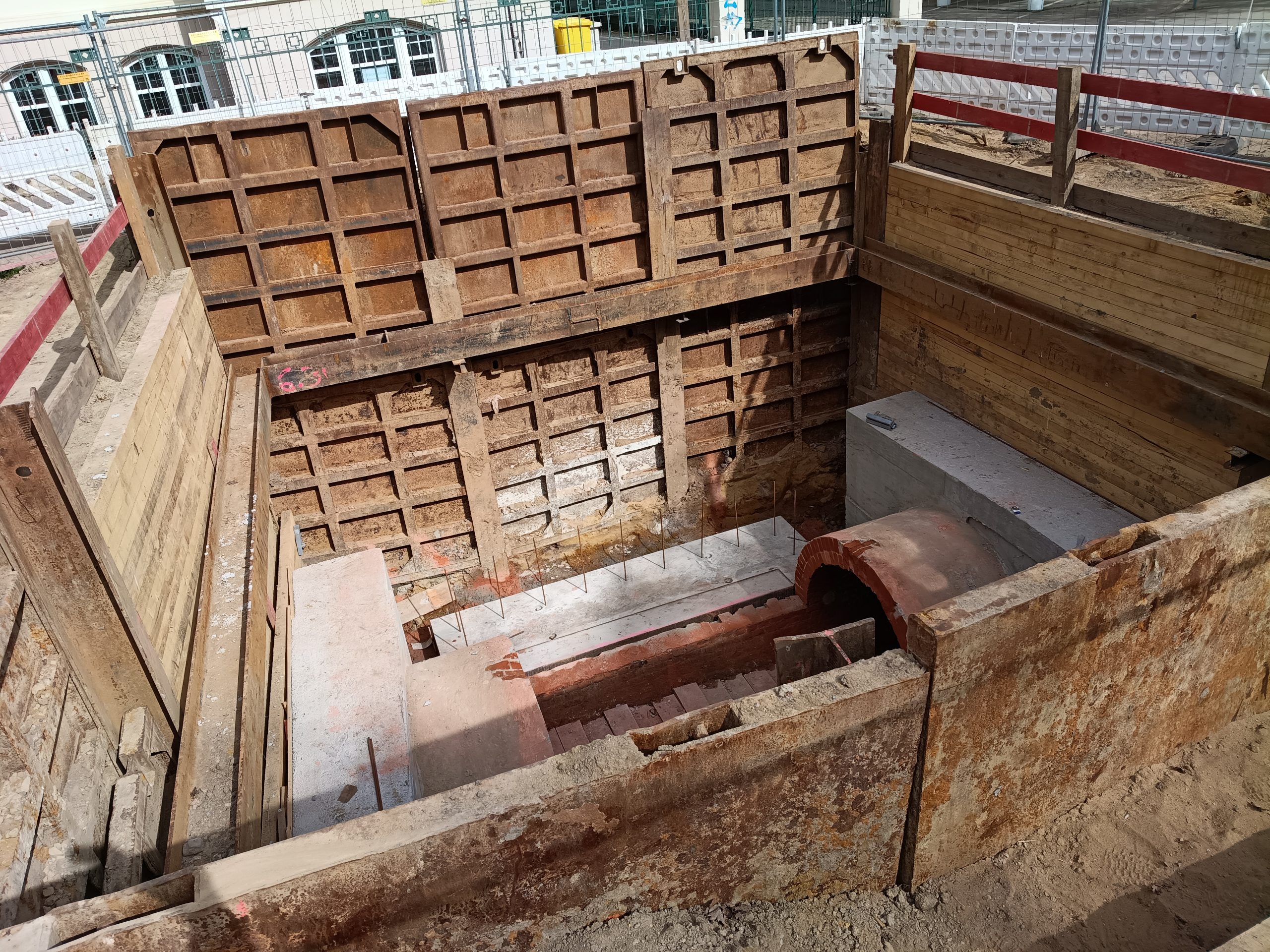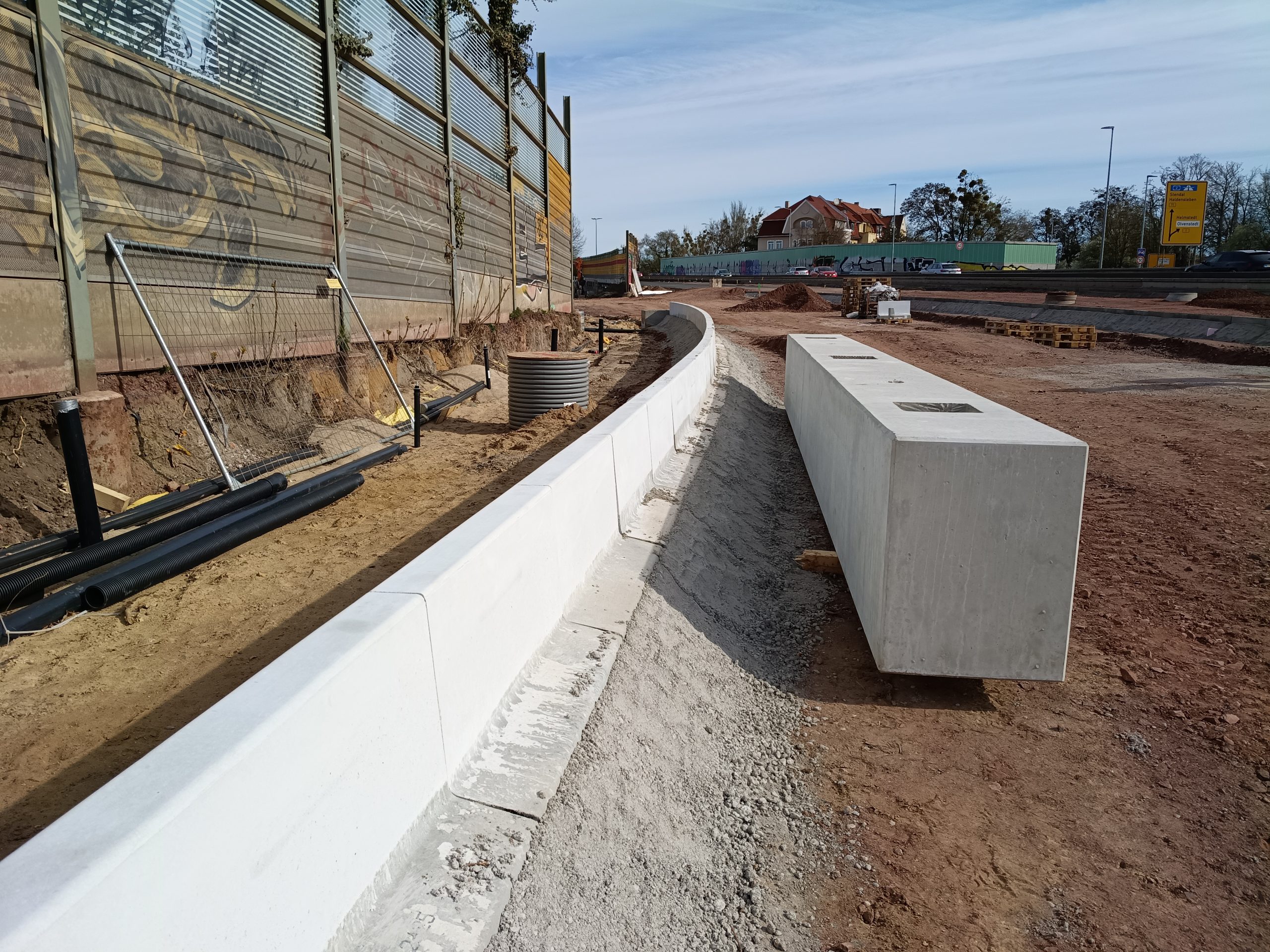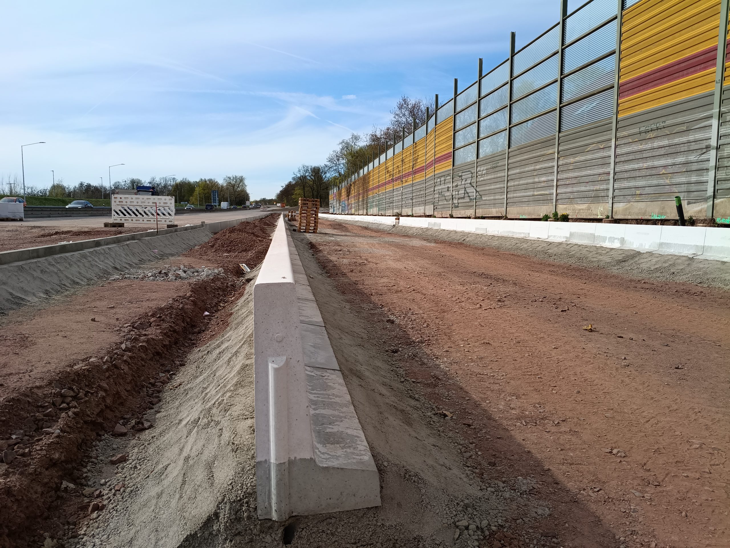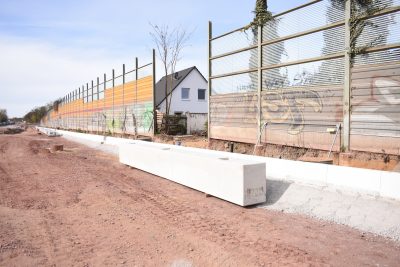 Parallel dazu entstehen entlang der Strecke die Fundamente für die Sichtschutzwand, die im Bereich des Magdeburger Rings den Schall des Verkehres absorbiert. Diese Fundamente bilden künftig die Basis für die entsprechenden Tragelemente.