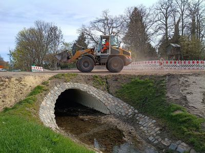 Ein weiterer wichtiger Meilenstein ist erreicht: Der Durchlass der Schrote ist fertiggestellt, der darüber liegende Damm bereits aufgeschüttet. Damit hat die Gleistrasse in diesem Bereich ihre endgültige Höhe erreicht. Nach der Schneeschmelze führt die Schrote derzeit wieder sichtbar mehr Wasser.